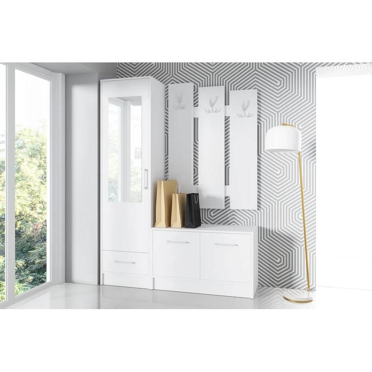 Predsieňová stena Maxi je vyrobená z kvalitného lamina v dekore dreva, nohy a úchytky sú vyrobené z plastu v striebornej farbe.