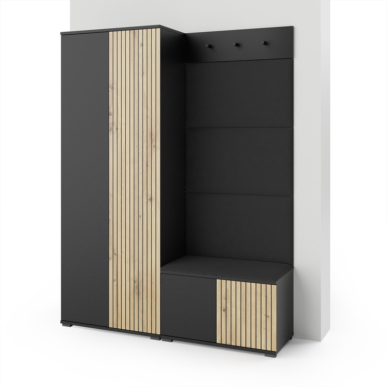 Predsieňová stena sa skladá z niekoľkých častí: šatníková skriňa, vešiak, skrinka na topánky