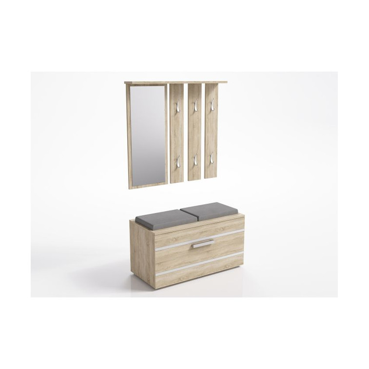 Predsieňová stena Opal so skrinkou na topánky. Moderný vzhľad hodiaci sa do všetkých súčasných interiérov. Praktické sedenie a veľké zrkadlo. Vyrobená z lamina 16 mm v bielej farbe. Dodávaná v rozloženom stave s montážnou sadou.