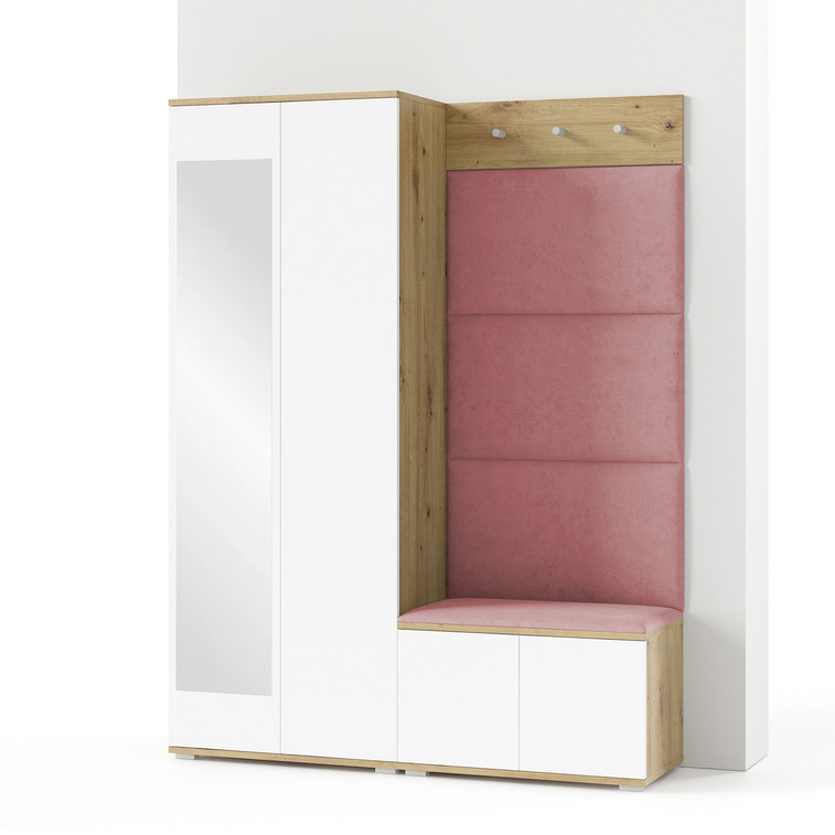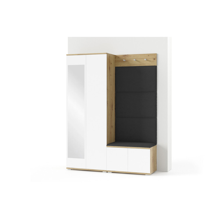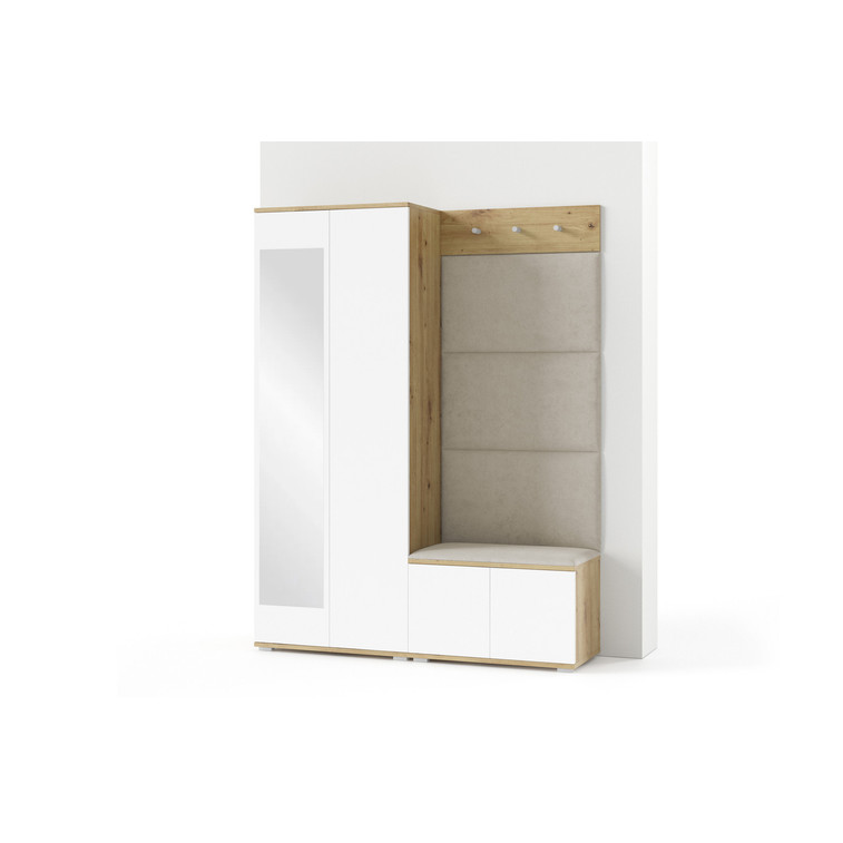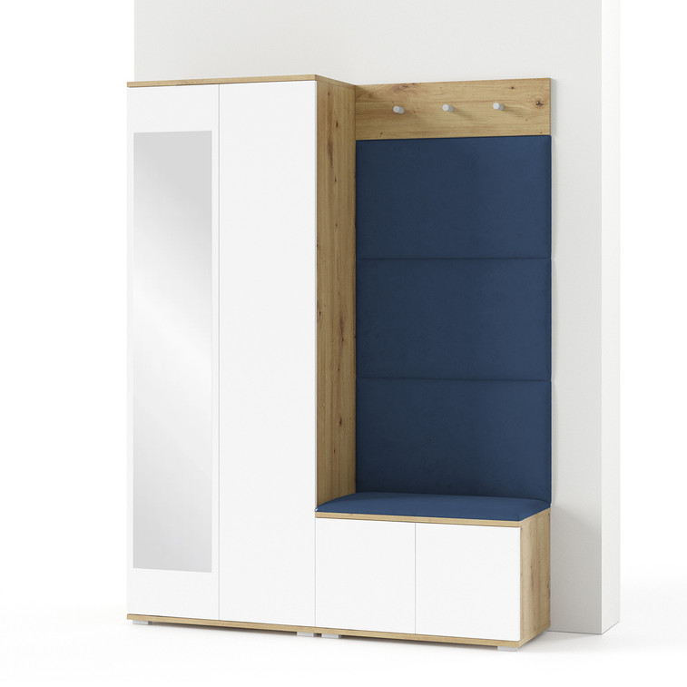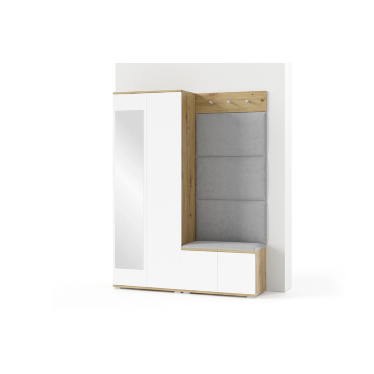 Je to praktický prvok do vstupných priestorov vášho domu. Predsieňová stena obsahuje čalúnené panely, ktoré sa montujú priamo na stenu za pomoci lepidla. Poťah panelov je tkanina Trinity. Predsieňová stena sa skladá z niekoľkých častí. Táto sada obsahuje: 1x šatníkovú skriňu, 1x botník, vešiak, 4 panely.