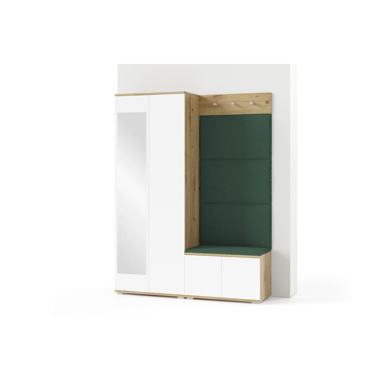Je to praktický prvok do vstupných priestorov vášho domu. Predsieňová stena obsahuje čalúnené panely, ktoré sa montujú priamo na stenu za pomoci lepidla. Poťah panelov je tkanina Trinity. Predsieňová stena sa skladá z niekoľkých častí. Táto sada obsahuje: 1x šatníkovú skriňu, 1x botník, vešiak, 4 panely.