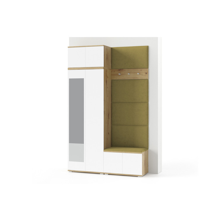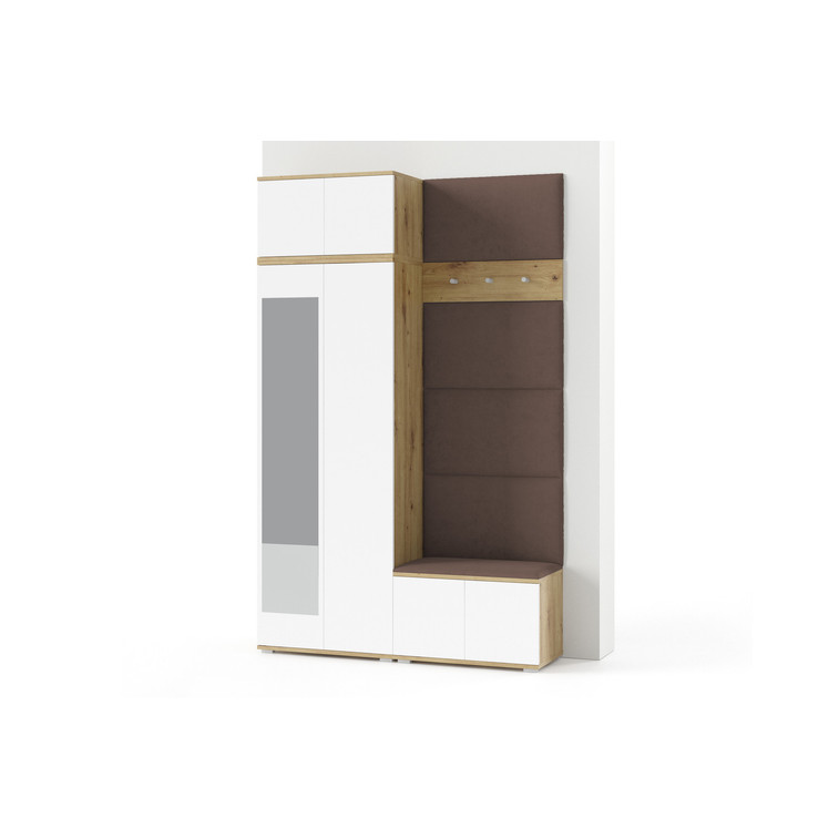 Je to praktický prvok do vstupných priestorov vášho domu. Predsieňová stena obsahuje čalúnené panely, ktoré sa montujú priamo na stenu za pomoci lepidla. Poťah panelov je tkanina Trinity. Predsieňová stena sa skladá z niekoľkých častí. Táto sada obsahuje: 1x šatníkovú skriňu, 1x nadstavba, 1x botník, vešiak, 5 panelov.
