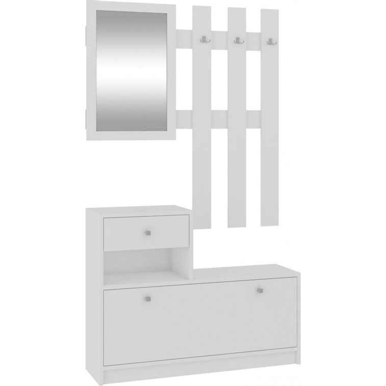 Funkčná predsieňová stena zostavená z vešiaka, zrkadla a botníka.