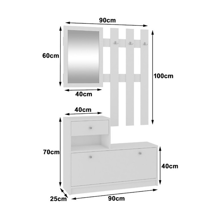 Rozmery vešiaka so zrkadlom: