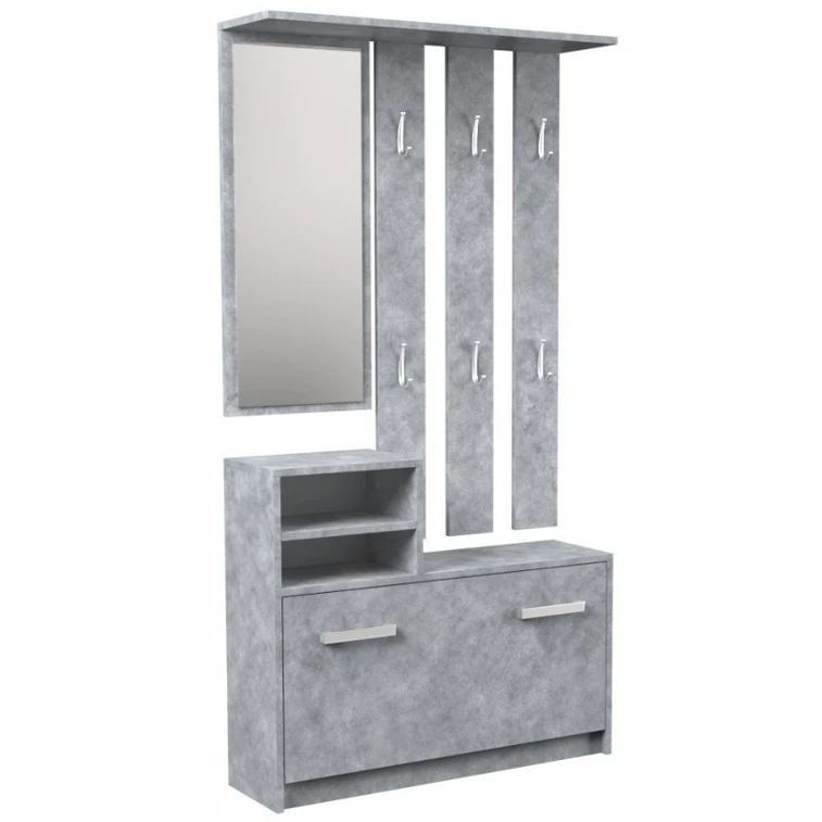 Funkčná predsieňová stena zostavená z vešiaku, zrkadla a skrinky na topánky.