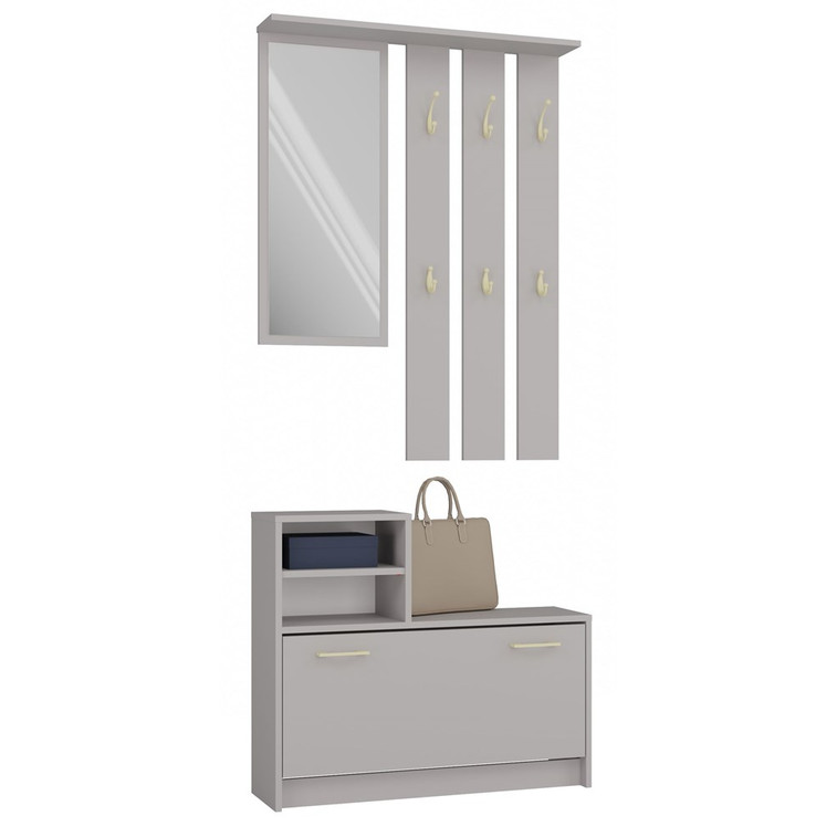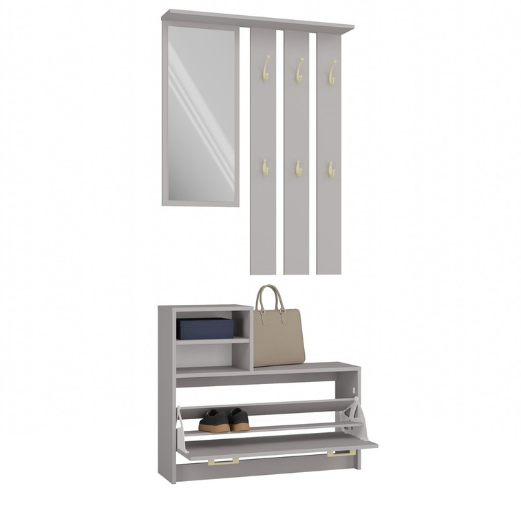 Predsieňová stena so skrinkou na topánky, je moderný a praktický prvok do vstupných priestorov vášho domu. Skladá sa z niekoľkých častí: