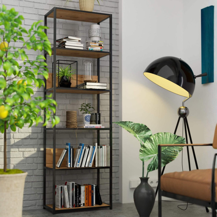 Regál 600, čierna / remeselný dub.