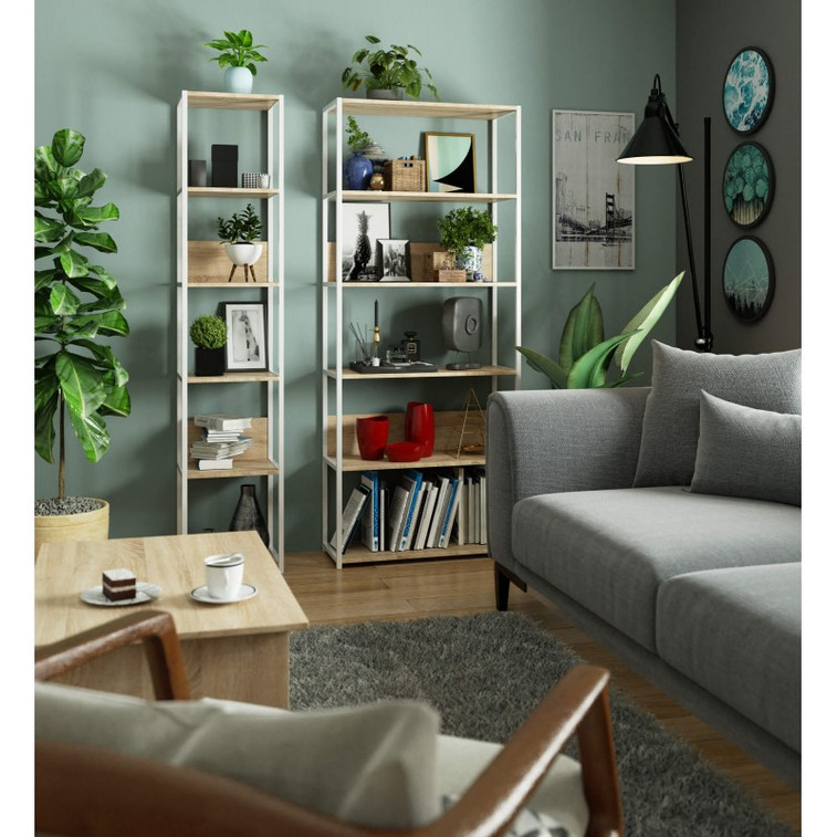 Kovový regál je praktický a moderný. Bude sa dobre vynímať v obývacej izbe, ale aj v kancelárii. Police sú vyrobené z laminovanej dosky. Je vyrobený z veľmi odolného materiálu, ktorý sa vyznačuje vysokou odolnosťou proti oderu.