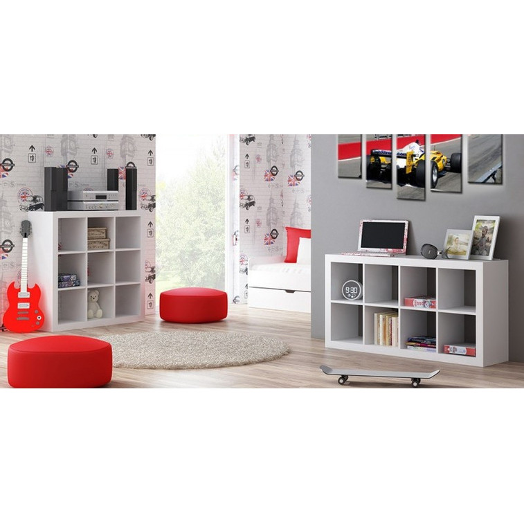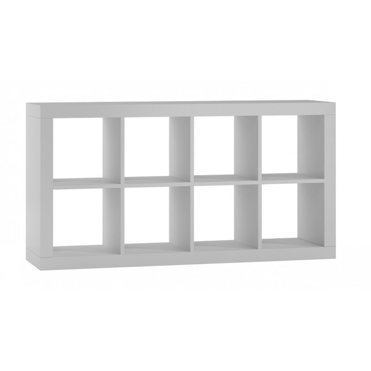 Regál Kalax 2x4 je pokrytý bielym laminom, s otvoreným úložným priestorom z oboch strán. Je vhodný ako knižnica, či úložný priestor na hračky pre deti, ale aj pre ďalšie využitie. Pre zberateľov môže poslúžiť ako pekné miesto pre rôzne kúsky z ich zbierky.