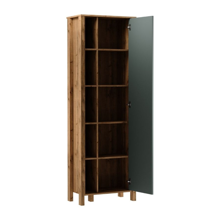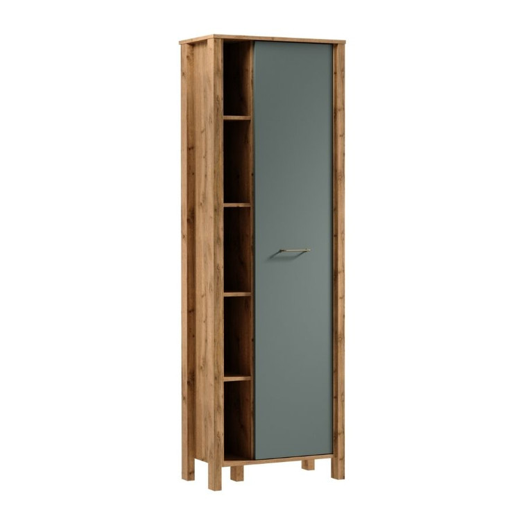 Jednoduchý a moderný regál, ktorý vás očarí svojou jednoduchosťou a eleganciou. Prírodné farby teplého dekoru dub Wotan na korpuse nábytku v kombinácii s jednofarebnou béžovou alebo zelenou na výber robia kolekciu prirodzene krásnu. Je vyrobený z kvalitného lamina, ktoré sa vyznačuje vysokou odolnosťou proti mechanickému poškodeniu.