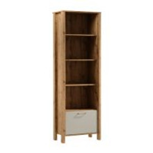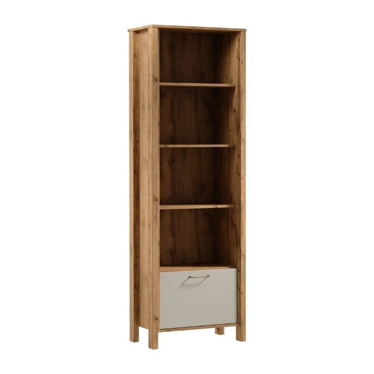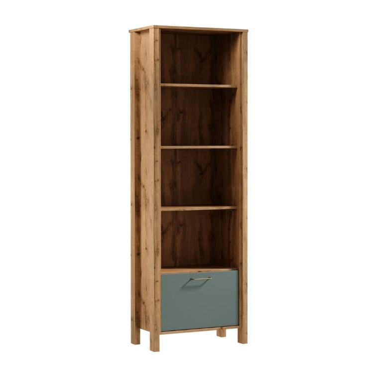 Jednoduchý a moderný regál, ktorý vás očarí svojou jednoduchosťou a eleganciou. Prírodné farby teplého dekoru dub Wotan na korpuse nábytku v kombinácii s jednofarebnou béžovou alebo zelenou na výber robia kolekciu prirodzene krásnu. Je vyrobený z kvalitného lamina, ktoré sa vyznačuje vysokou odolnosťou proti mechanickému poškodeniu.
