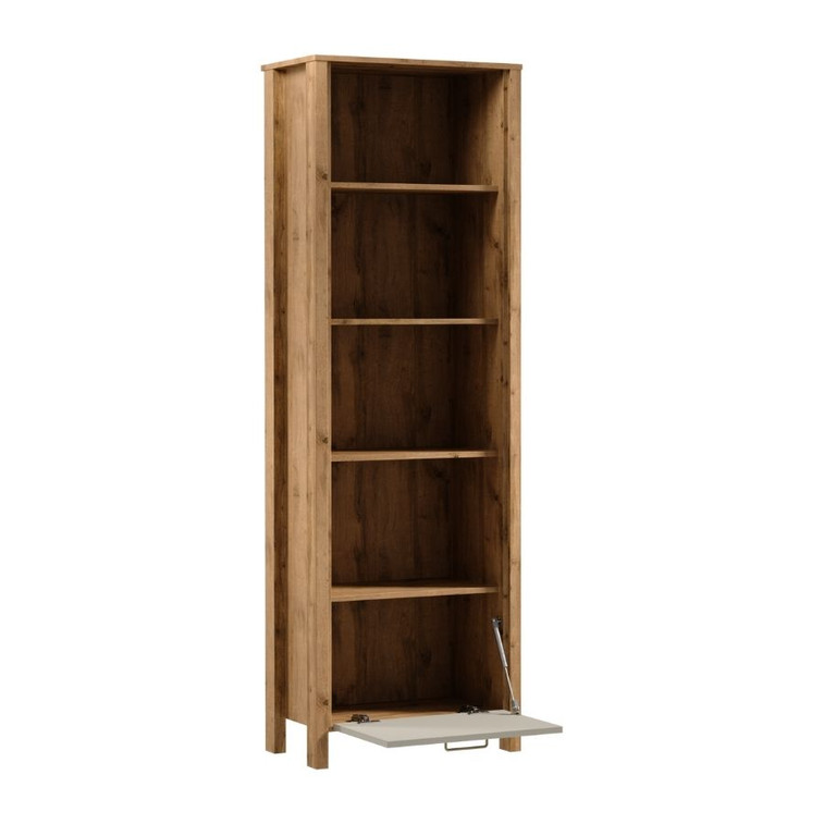 Jednoduchý a moderný regál, ktorý vás očarí svojou jednoduchosťou a eleganciou. Prírodné farby teplého dekoru dub Wotan na korpuse nábytku v kombinácii s jednofarebnou béžovou alebo zelenou na výber robia kolekciu prirodzene krásnu. Je vyrobený z kvalitného lamina, ktoré sa vyznačuje vysokou odolnosťou proti mechanickému poškodeniu.
