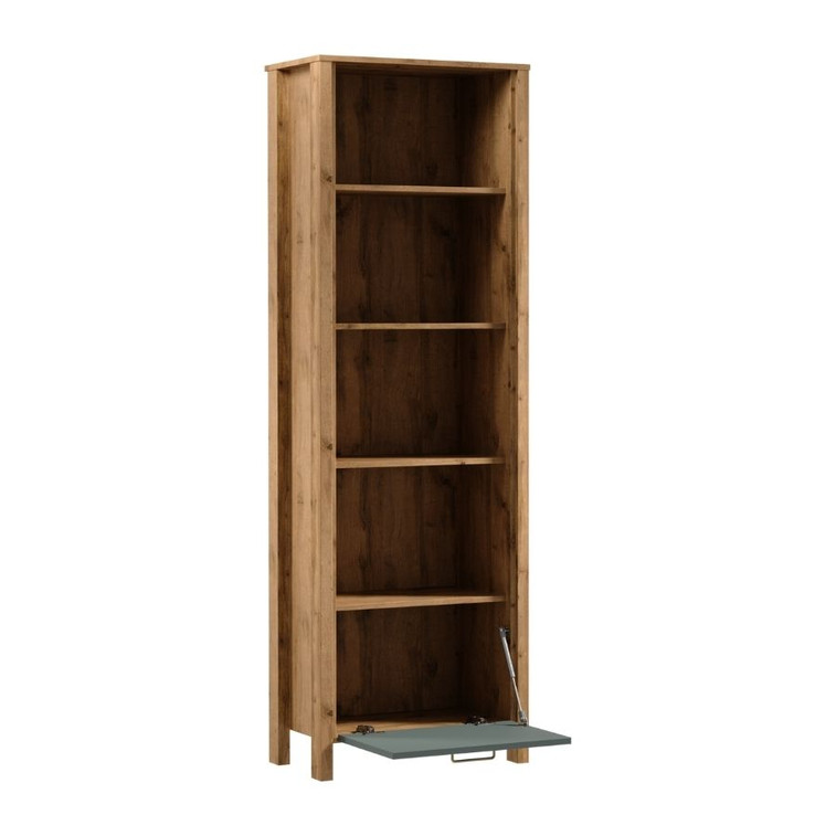 Jednoduchý a moderný regál, ktorý vás očarí svojou jednoduchosťou a eleganciou. Prírodné farby teplého dekoru dub Wotan na korpuse nábytku v kombinácii s jednofarebnou béžovou alebo zelenou na výber robia kolekciu prirodzene krásnu. Je vyrobený z kvalitného lamina, ktoré sa vyznačuje vysokou odolnosťou proti mechanickému poškodeniu.