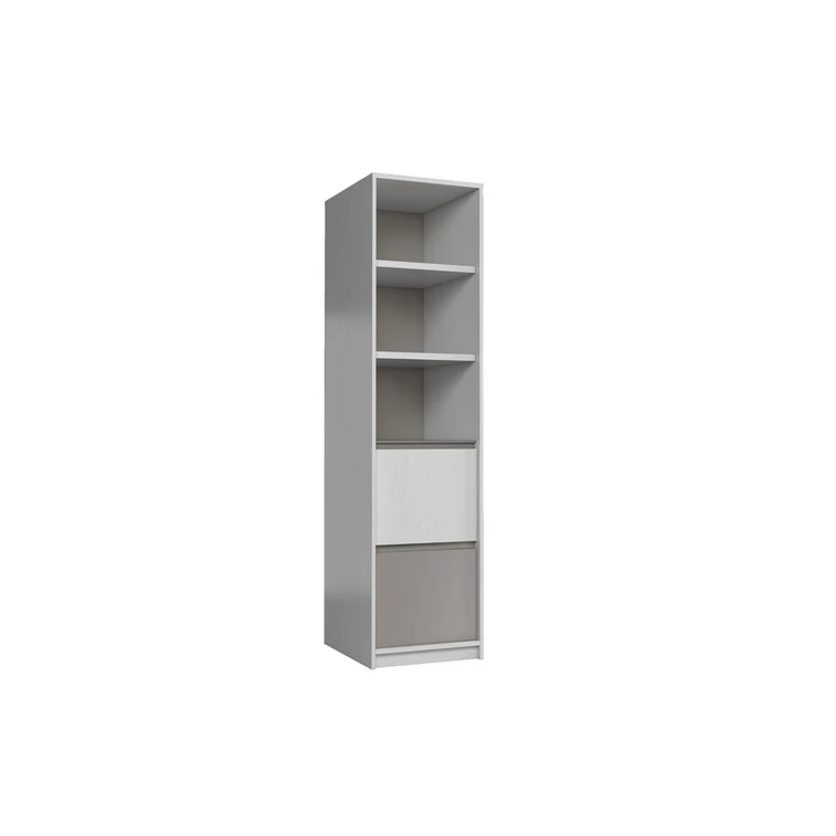 Vyrobený z lamina, má jednoduchý a nadčasový design. Regál je súčasťou systému Mati. Komponenty tvoria jedinečnú študentskú izbu. Dizajn nábytku tvorí použitie decentných farebných odtieňov bielej a šedej.