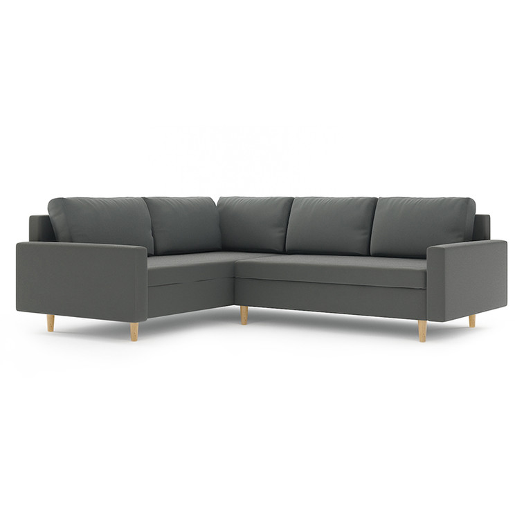 Rohová rozkladacia sedacia súprava BELLIS II. Pevná konštrukcia z dreva a OSB dosky. Poťah z kvalitnej látky MONOLITH v moderných farebných odtieňoch. Možnosť zvolenia ľavej, alebo pravej varianty. Jednoduché rozkladanie pohovky na lôžkovú podobu. Moderný škandinávsky dizajn vhodný do všetkých súčasných interiérov. Sedacia súprava má 2 úložné priestory pod sedákmi.