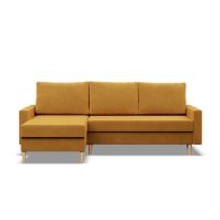 Pevná konštrukcia z dreva a OSB dosky. Jednoduché rozkladanie pohovky na lôžkovú podobu. Moderný škandinávsky dizajn vhodný do všetkých súčasných interiérov.