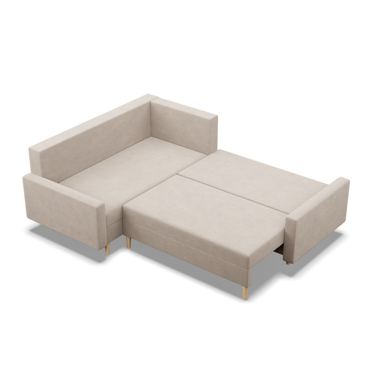 Pevná konštrukcia z dreva a OSB dosky. Jednoduché rozkladanie pohovky na lôžkovú podobu. Moderný škandinávsky dizajn vhodný do všetkých súčasných interiérov.
