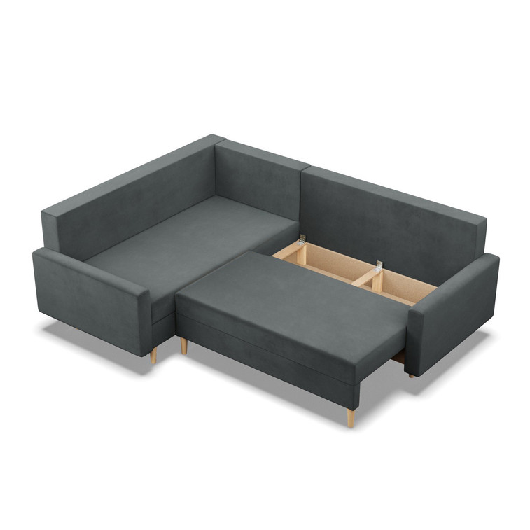 Pevná konštrukcia z dreva a OSB dosky. Jednoduché rozkladanie pohovky na lôžkovú podobu. Moderný škandinávsky dizajn vhodný do všetkých súčasných interiérov.