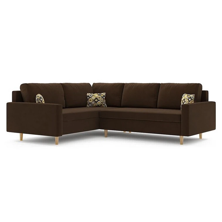 Rohová rozkladacia sedacia súprava ETNA II Model 2. Pevná konštrukcia z dreva a OSB dosky. Poťah z kvalitnej látky VELUR-Micro v moderných farebných odtieňoch. Možnosť zvolenia ľavého alebo pravého variantu. Jednoduché rozkladanie pohovky na lôžkovú podobu. Moderný škandinávsky design vhodný do všetkých súčasných interiérov. Sedacia súprava má 2 úložné priestory pod sedákmi.