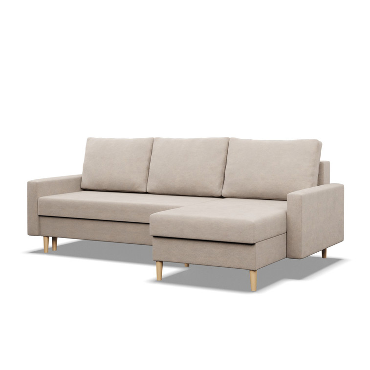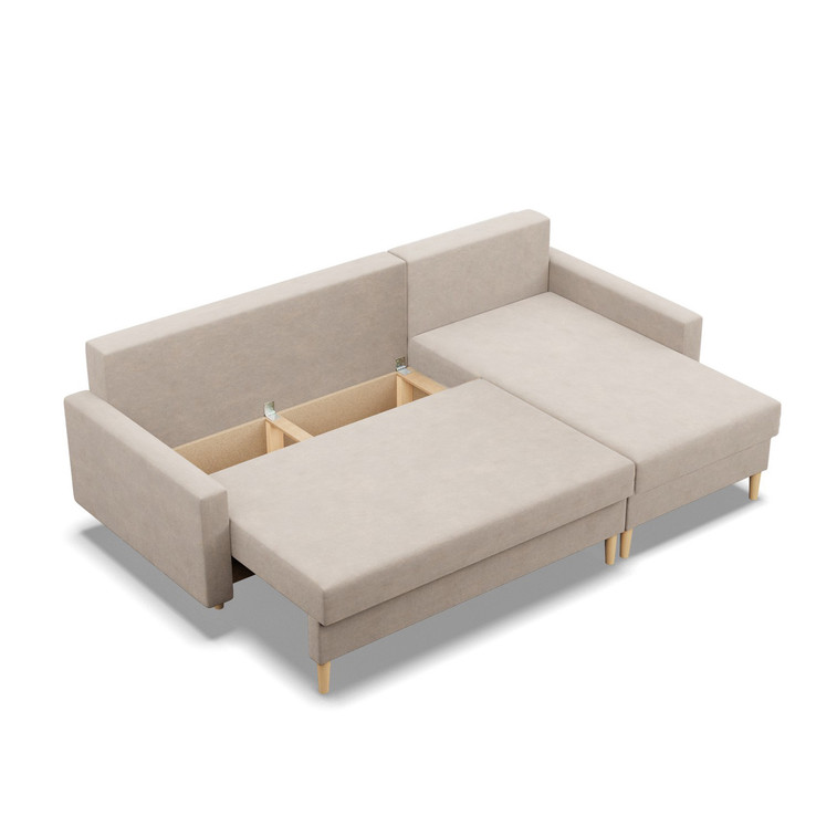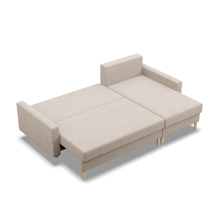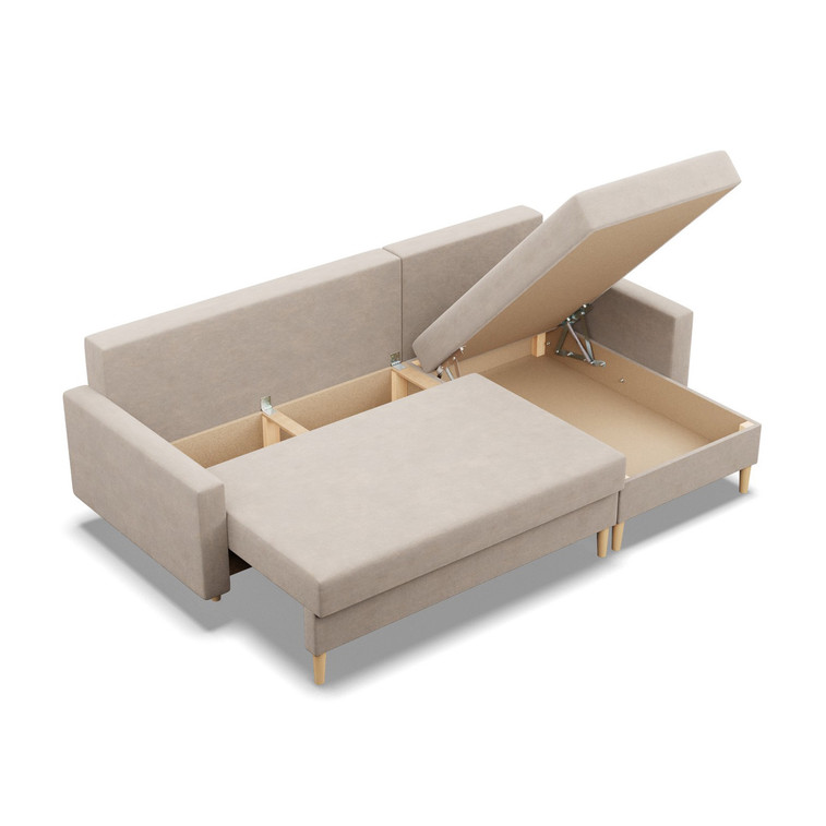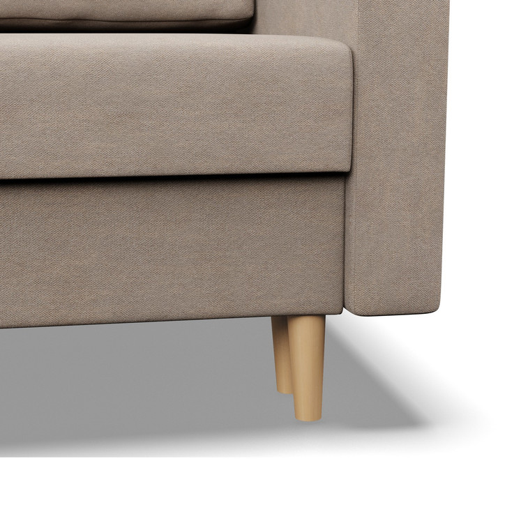 Pevná konštrukcia z dreva a OSB dosky. Jednoduché rozkladanie pohovky na lôžkovú podobu. Moderný škandinávsky dizajn vhodný do všetkých súčasných interiérov.
