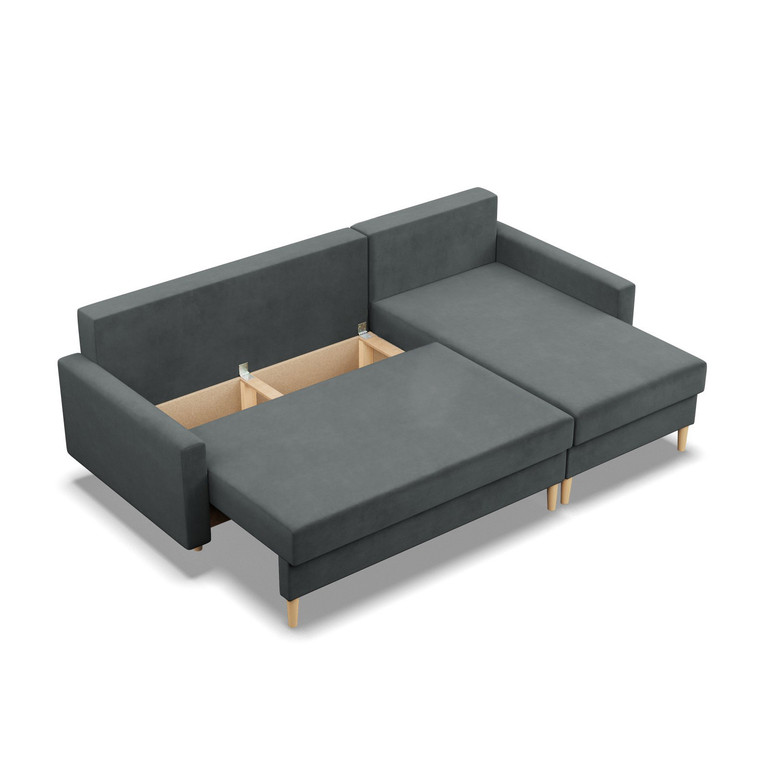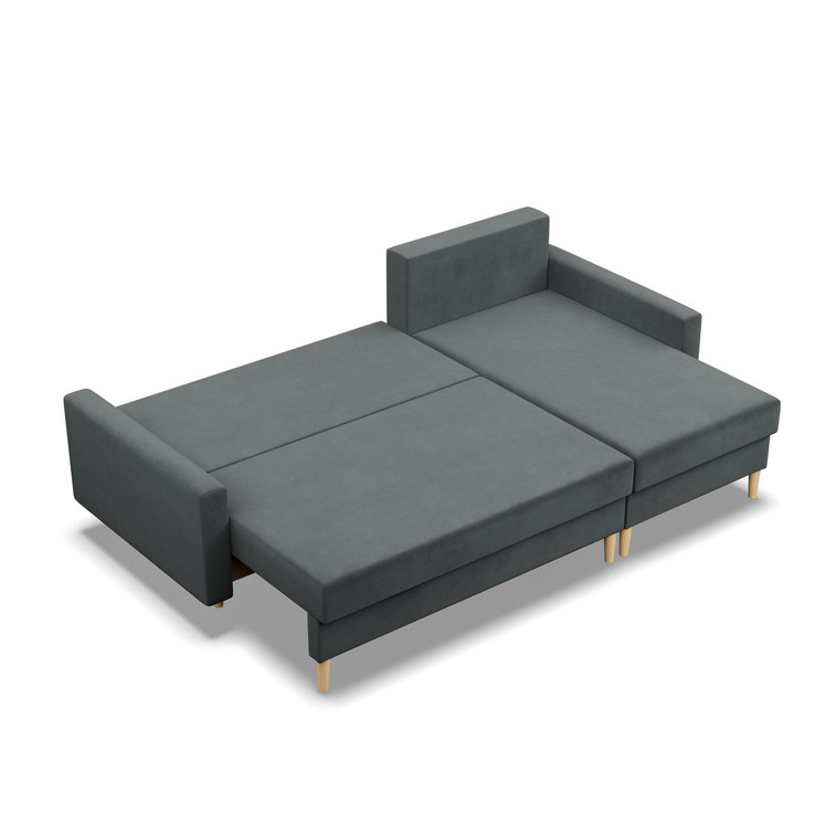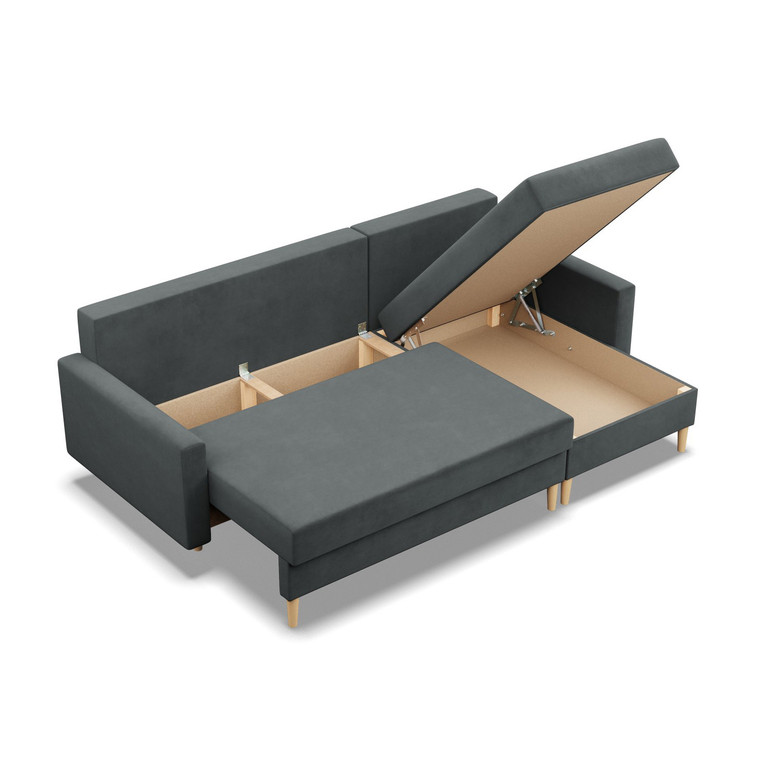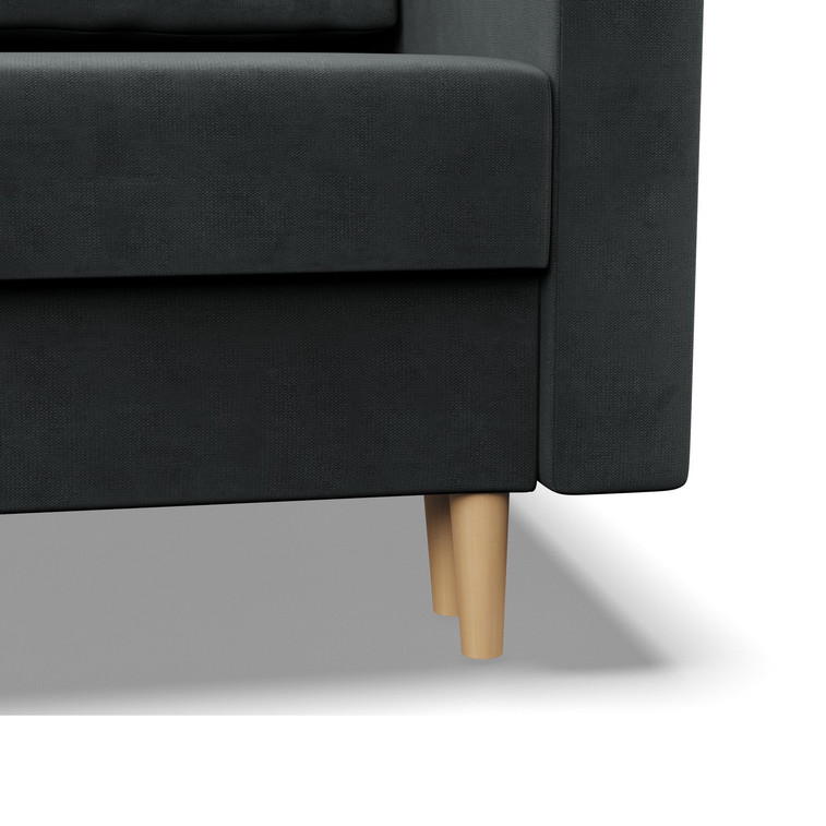 Pevná konštrukcia z dreva a OSB dosky. Jednoduché rozkladanie pohovky na lôžkovú podobu. Moderný škandinávsky dizajn vhodný do všetkých súčasných interiérov.