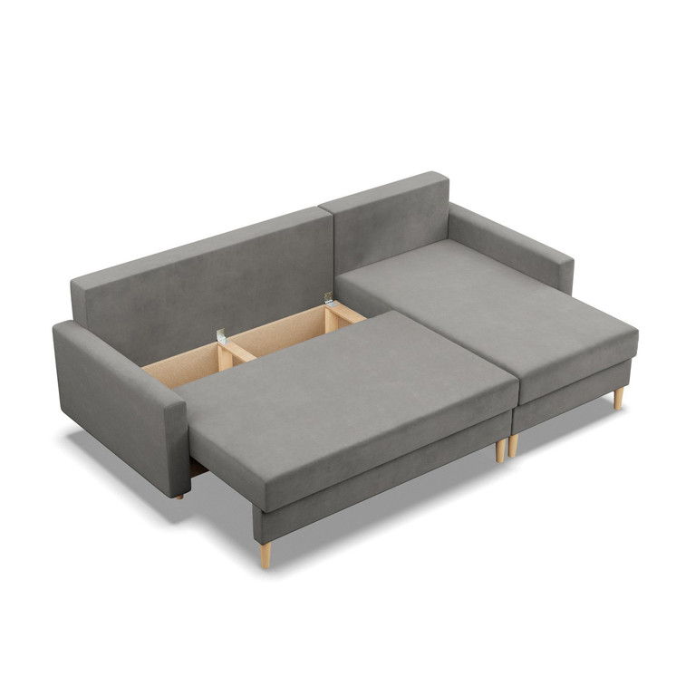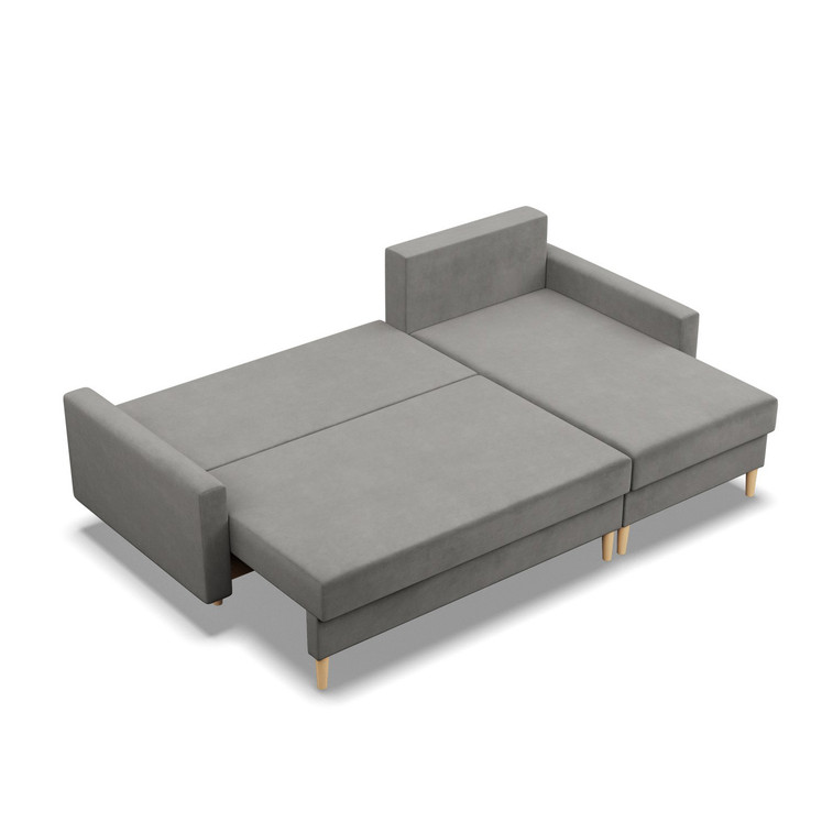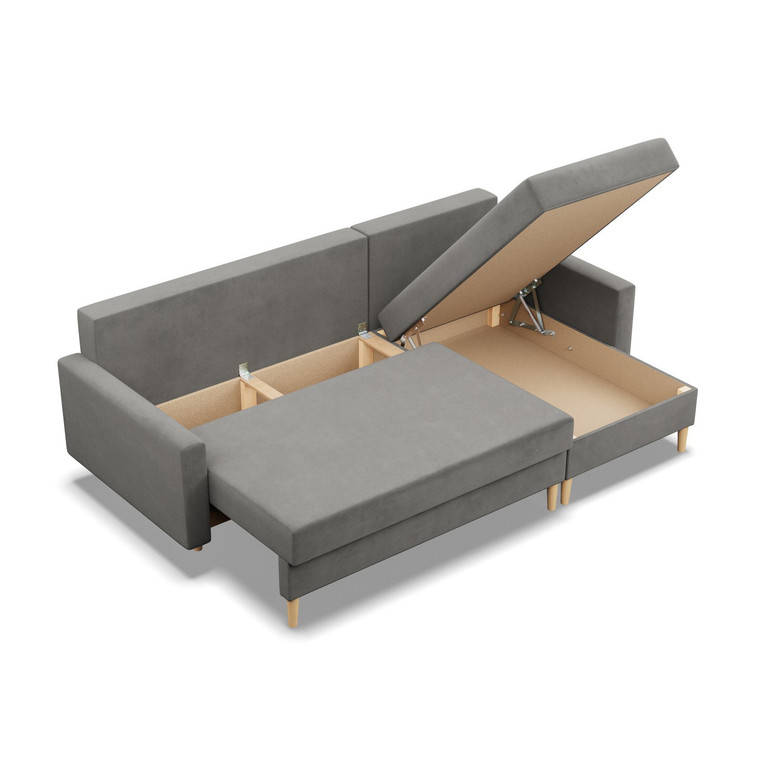 Pevná konštrukcia z dreva a OSB dosky. Jednoduché rozkladanie pohovky na lôžkovú podobu. Moderný škandinávsky dizajn vhodný do všetkých súčasných interiérov.