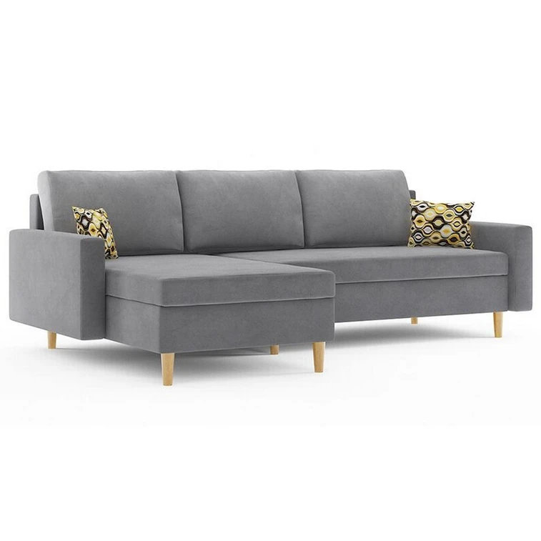 Pevná konštrukcia z dreva a OSB dosky. Poťah z kvalitnej látky Haiti v moderných farebných odtieňoch. Možnosť zvolenia ľavého alebo pravého variantu. Jednoduché rozkladanie pohovky na lôžkovú podobu. Moderný škandinávsky dizajn vhodný do všetkých súčasných interiérov. Sedacia súprava má 2 úložné priestory pod sedákmi.