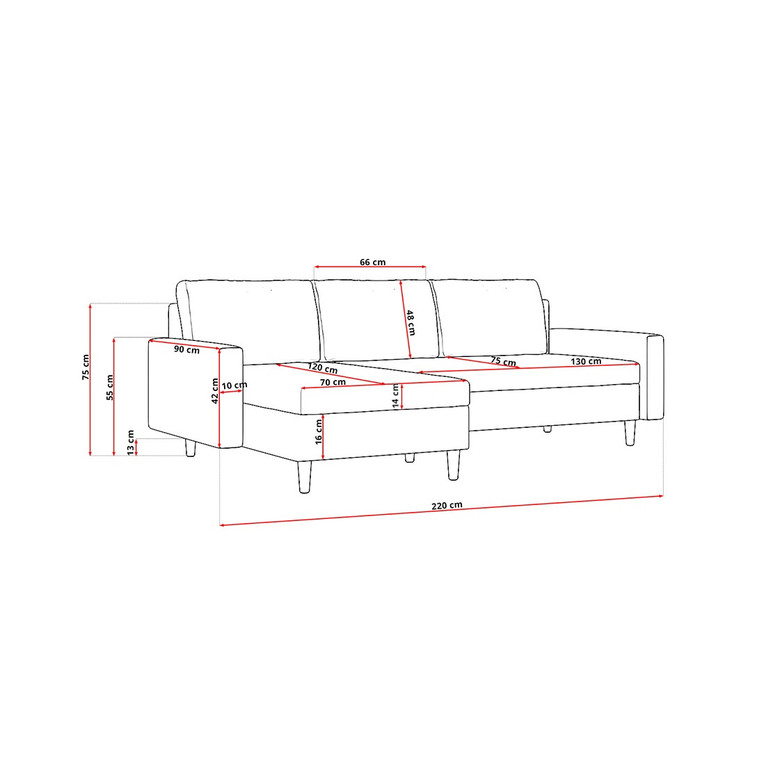 Pevná konštrukcia z dreva a OSB dosky. Poťah z kvalitnej látky Haiti v moderných farebných odtieňoch. Možnosť zvolenia ľavého alebo pravého variantu. Jednoduché rozkladanie pohovky na lôžkovú podobu. Moderný škandinávsky dizajn vhodný do všetkých súčasných interiérov. Sedacia súprava má 2 úložné priestory pod sedákmi.