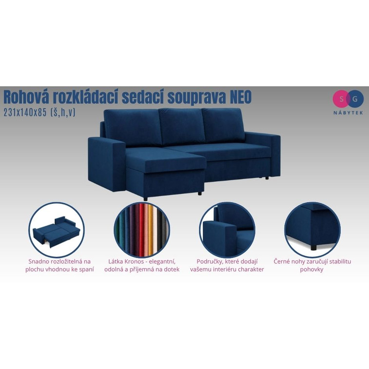 Rohová rozkladacia sedacia súprava NEO - rovný bok.