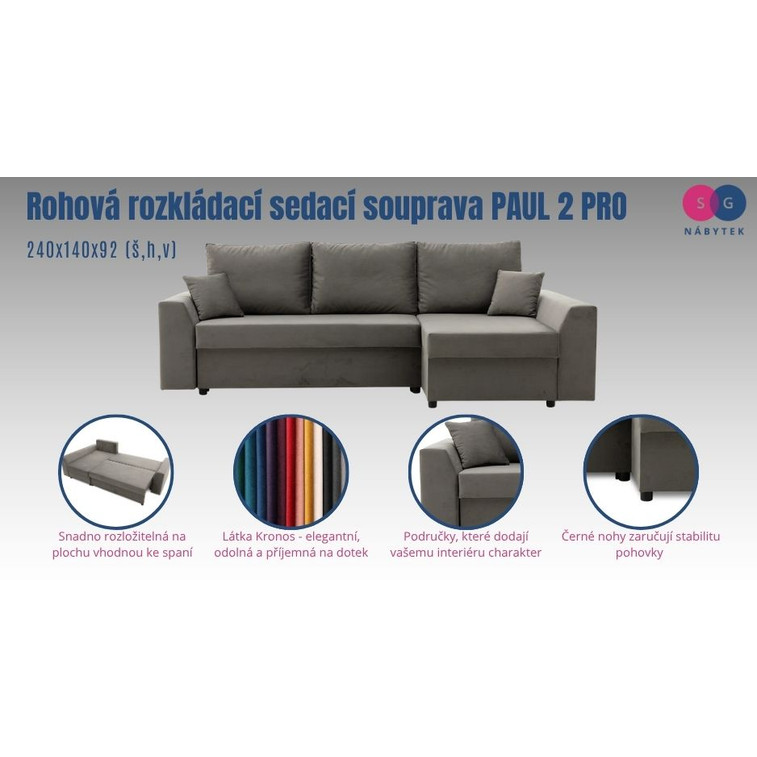Rohová rozkladacia sedacia súprava PAUL 2 PRO.
