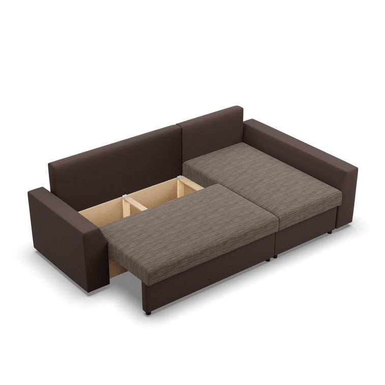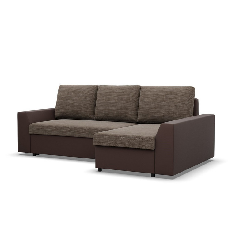 Rohová rozkladacia sedacia súprava PAUL látka v kombinácii s eko-kožou Pravá Hnedá