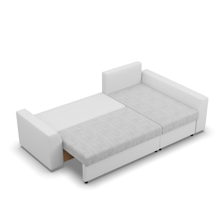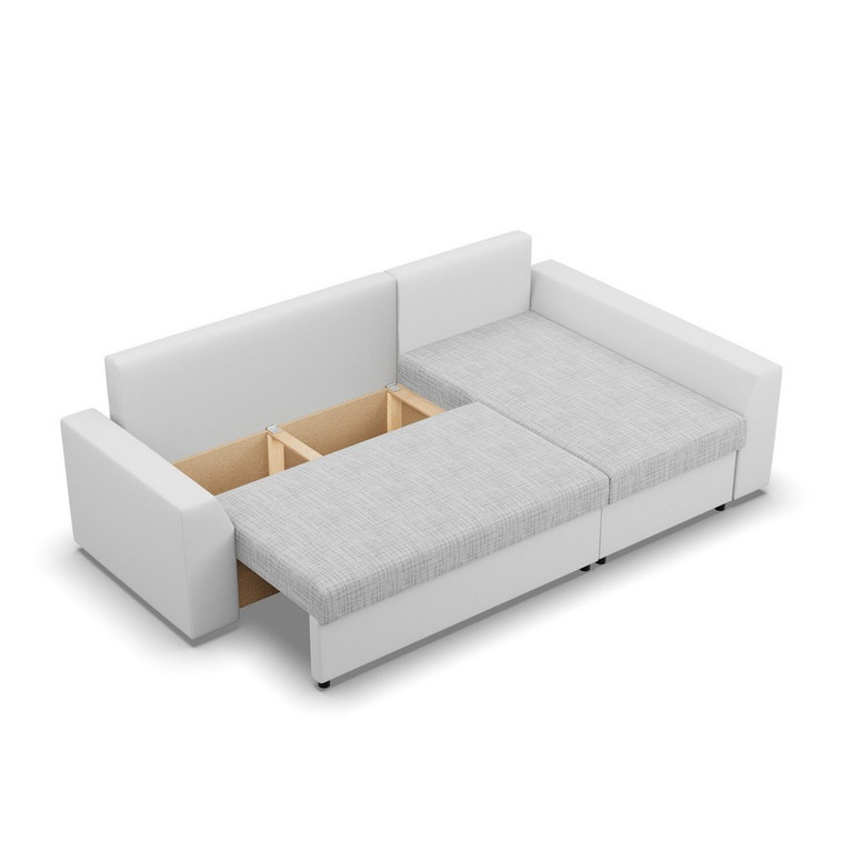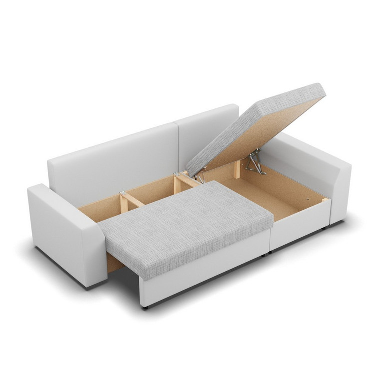 Rohová rozkladacia sedacia súprava PAUL látka v kombinácii s eko-kožou Pravá Sivá/biela