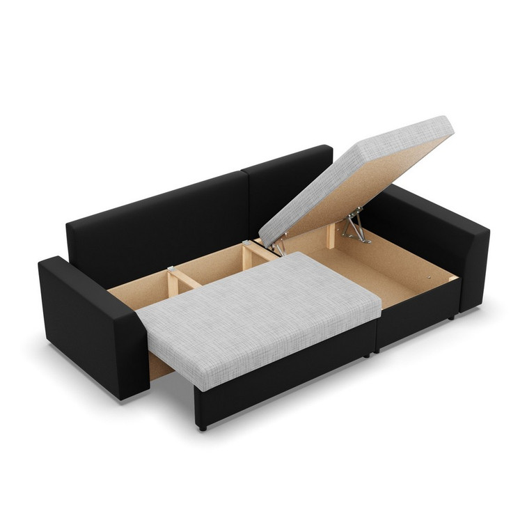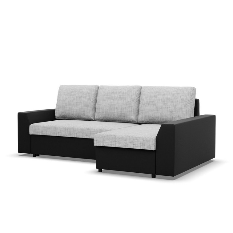Rohová rozkladacia sedacia súprava PAUL látka v kombinácii s eko-kožou Pravá Sivá/čierna