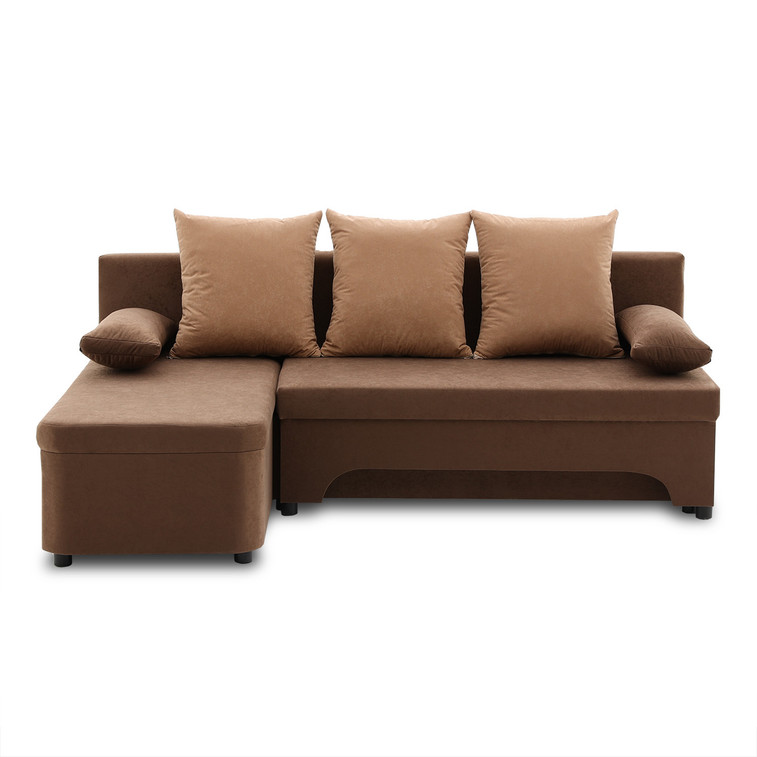 Rozkladacia sedacia rohová súprava TAMA. Pevná konštrukcia z dreva a OSB dosky. Jednoduché rozkladanie sedacej súpravy na lôžkovú podobu. Moderný dizajn vhodný do všetkých súčasných interiérov.