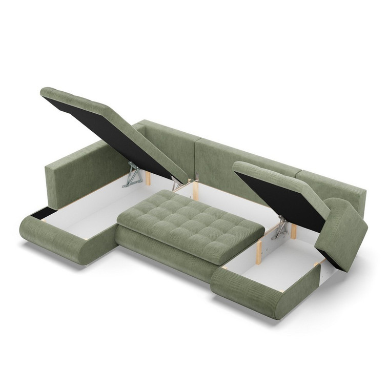 Pevná konštrukcia z dreva a OSB dosky. Poťah z kvalitnej tkaniny v mnohých moderných farebných odtieňoch. Sedacia časť je prešívaná. Jednoduché rozkladanie sedacej súpravy na lôžkovú podobu. Moderný dizajn vhodný do všetkých súčasných interiérov.