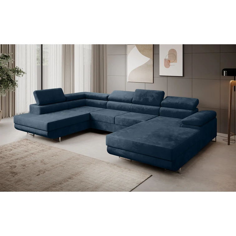 Rohová rozkladacia sedacia súprava U 274 MARYEN Ľavá Tmavo modrá
