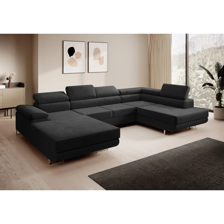 Rohová rozkladacia sedacia súprava U 274 MARYEN Pravá Čierna II