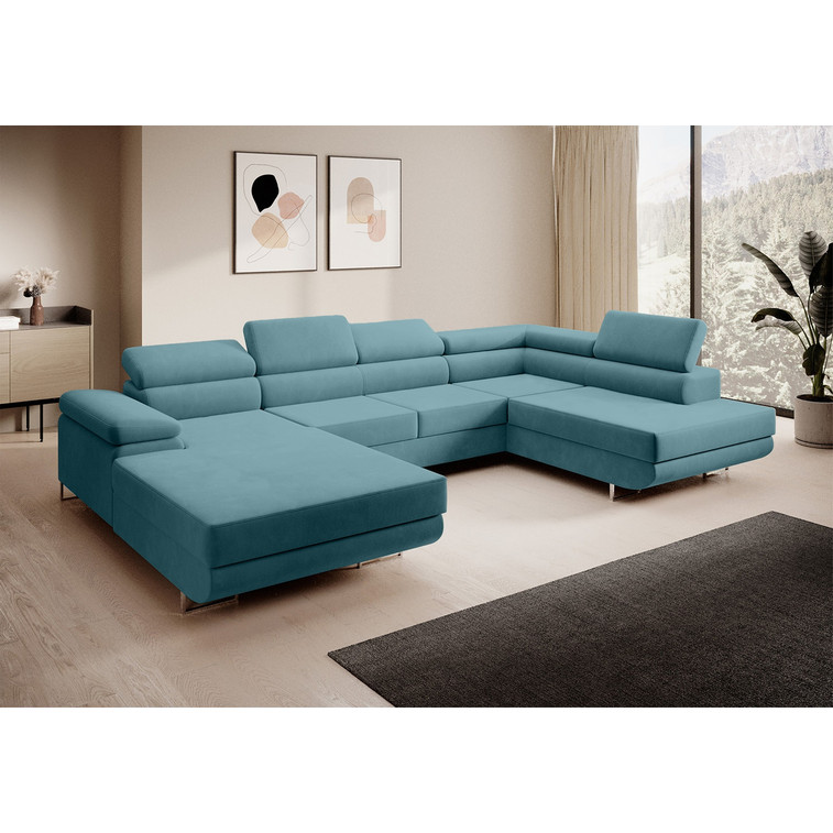 Rohová rozkladacia sedacia súprava U 274 MARYEN Pravá Tyrkysová