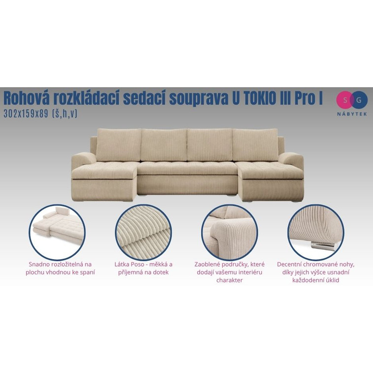 Rohová rozkladacia sedacia súprava U TOKIO III Pro I.