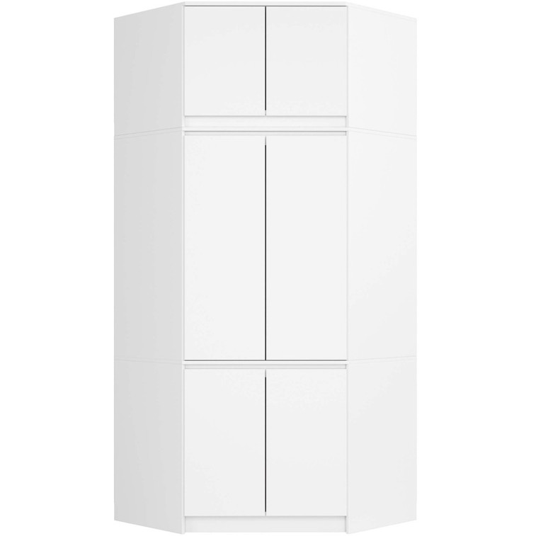 Rohová šatníková skriňa s nadstavbou S100 - biela.