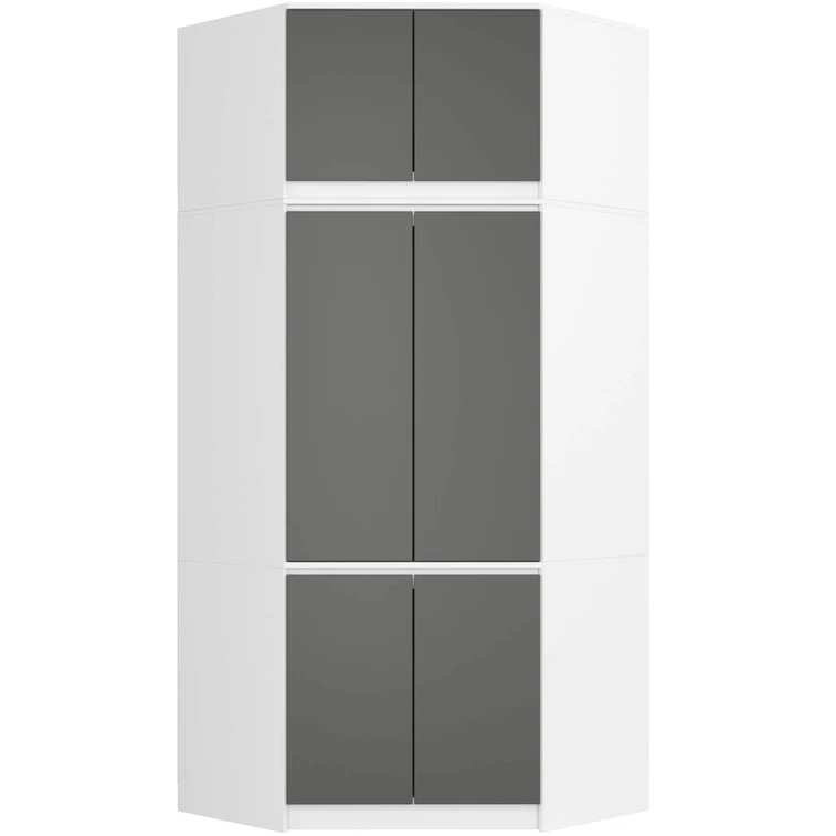 Rohová šatníková skriňa s nadstavbou S100 - biela/sivá.