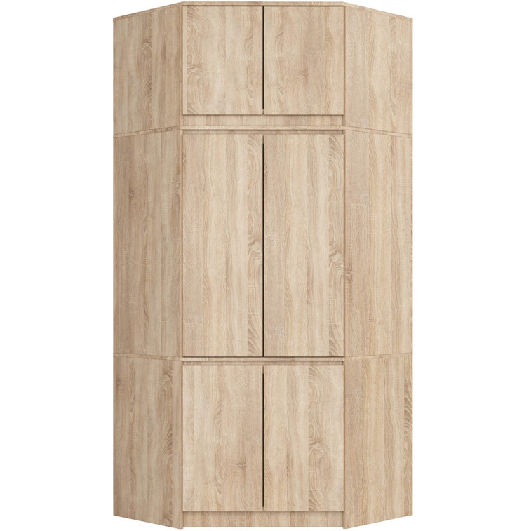 Rohová šatníková skriňa s nadstavbou S100 - dub sonoma.