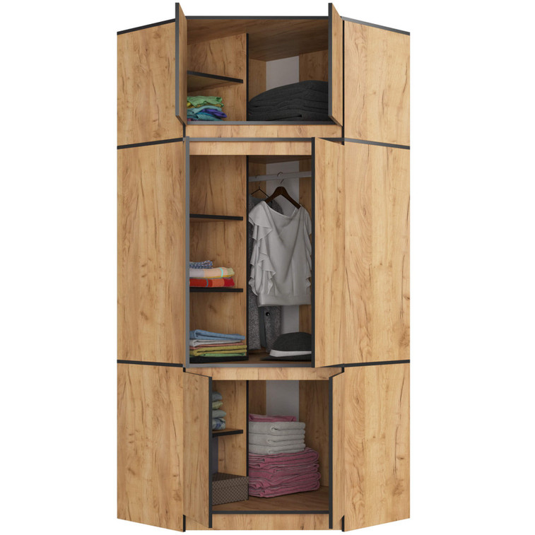 Rohová šatníková skriňa s nadstavbou S100 - remeselný dub.