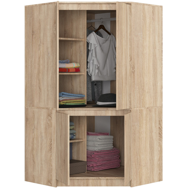 Rohová šatníková skriňa S100 4D CLP - dub sonoma.