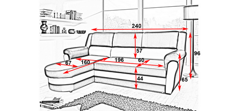 charakter. Výberom rohovej sedacej súpravy Bruno určite oceníte komfort používania. Zadná strana rohu je navyše potiahnutá materiálom ladiacim s farbou celku. Pohovka má spaciu plochu 196 x 124 cm a úložným priestorom na lôžkoviny.