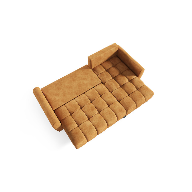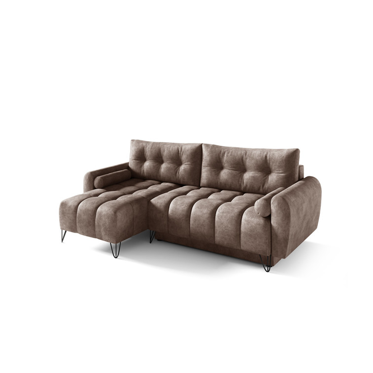 Pevná konštrukcia z dreva a OSB dosky. Poťah z kvalitnej látky Goya v moderných farebných odtieňoch. Jednoduché rozkladanie pohovky na lôžkovú podobu. Moderný škandinávsky dizajn vhodný do všetkých súčasných interiérov. Súčasťou pohovky je úložný priestor.