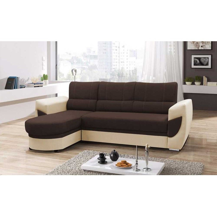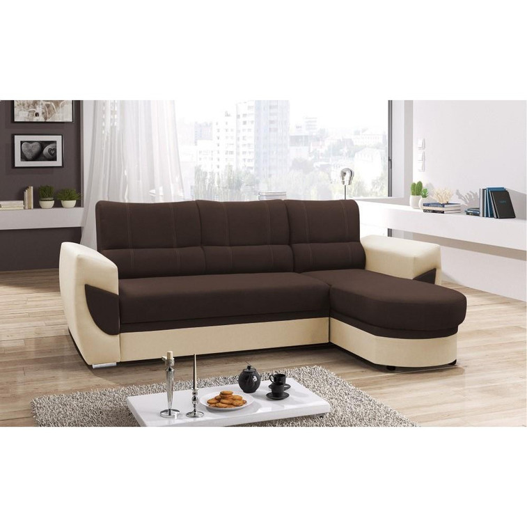 Rohová sedacia súprava Trendi Pravá Tmavohnedá/svetlohnedá - tkanina + ekokoža
