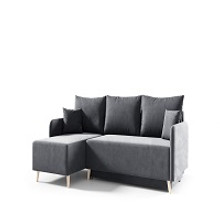 Pevná konštrukcia z dreva a OSB dosky. Poťah z kvalitnej látky Kronos v moderných farebných odtieňoch. Jednoduché rozkladanie pohovky na lôžkovú podobu. Moderný škandinávsky dizajn vhodný do všetkých súčasných interiérov. Súčasťou pohovky je úložný priestor.
