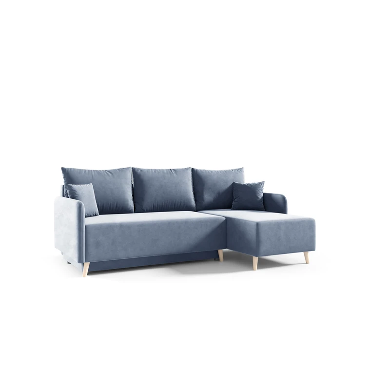 Pevná konštrukcia z dreva a OSB dosky. Poťah z kvalitnej látky Kronos v moderných farebných odtieňoch. Jednoduché rozkladanie pohovky na lôžkovú podobu. Moderný škandinávsky dizajn vhodný do všetkých súčasných interiérov. Súčasťou pohovky je úložný priestor.