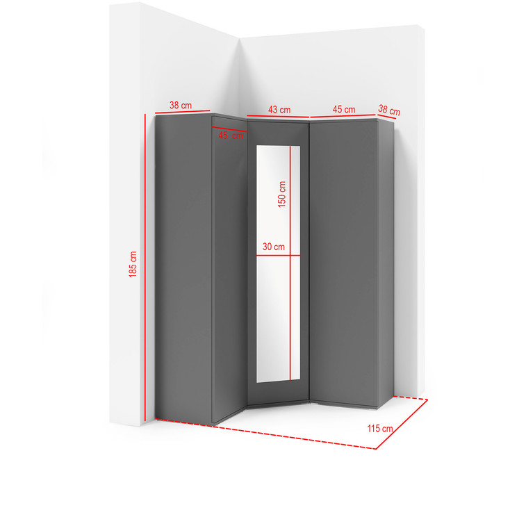 Rohová skriňa AMI 40 so zrkadlom.